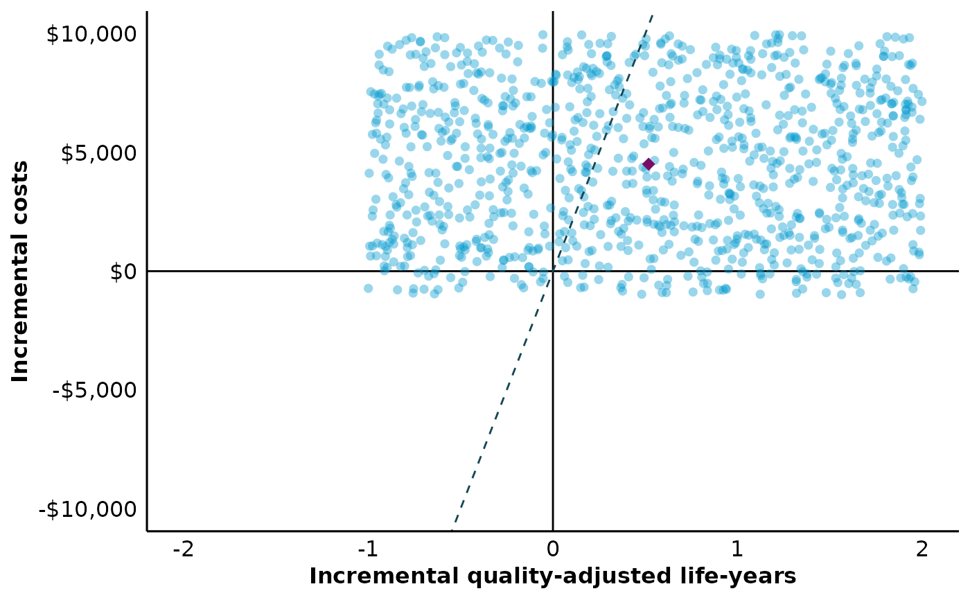 plot_psa_scatter.Rdplot_psa_scatter takes a data.frame of incremental quality-adjusted life-years (QALYs) and incremental costs, as might be obtained from a probabilistic sensitivity analysis, and plots these data on the incremental cost-effectiveness plane.